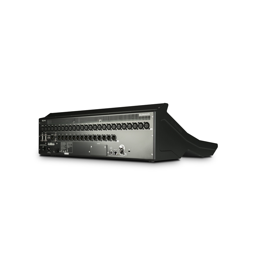 Mixer digitale Allen & Heath SQ6 con DSP XCVI a 96 kHz, 48 canali di input, fader motorizzati, touchscreen integrato e routing avanzato, progettato per applicazioni live professionali, installazioni AV ed eventi di media e grande scala.