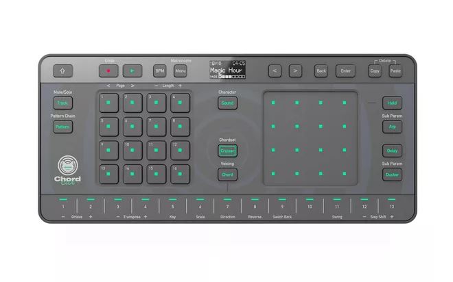 Chordcat integra 145 suoni preset e 16 kit di batteria che spaziano da strumenti acustici a sintetizzatori e percussioni, oltre a tre effetti incorporati – Arpeggiator, Delay e Ducker – per arricchire texture sonore e groove. La groovebox supporta la creazione di melodie chord-driven, linee ritmiche e sequenze armoniche complesse in modo immediato e giocoso.