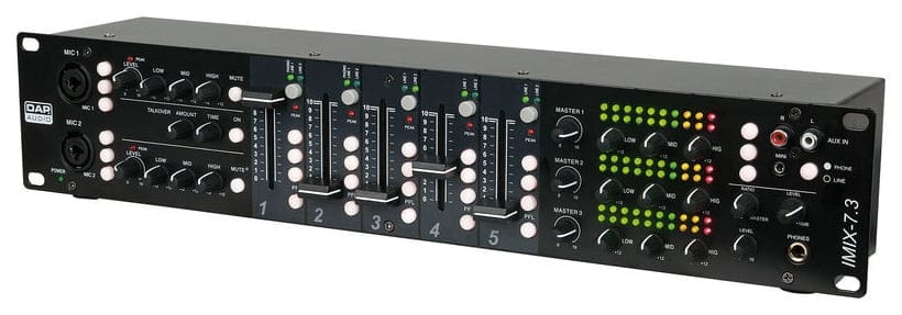 Il DAP Audio IMIX 7.3 è un mixer audio professionale a 7 canali, progettato per offrire un controllo completo su 3 zone separate, con possibilità di assegnare sorgenti diverse a ciascuna area. Compatto nel formato rack 2U, è la scelta perfetta per chi cerca una soluzione affidabile e flessibile in contesti come bar, ristoranti, palestre, centri congressi e retail.