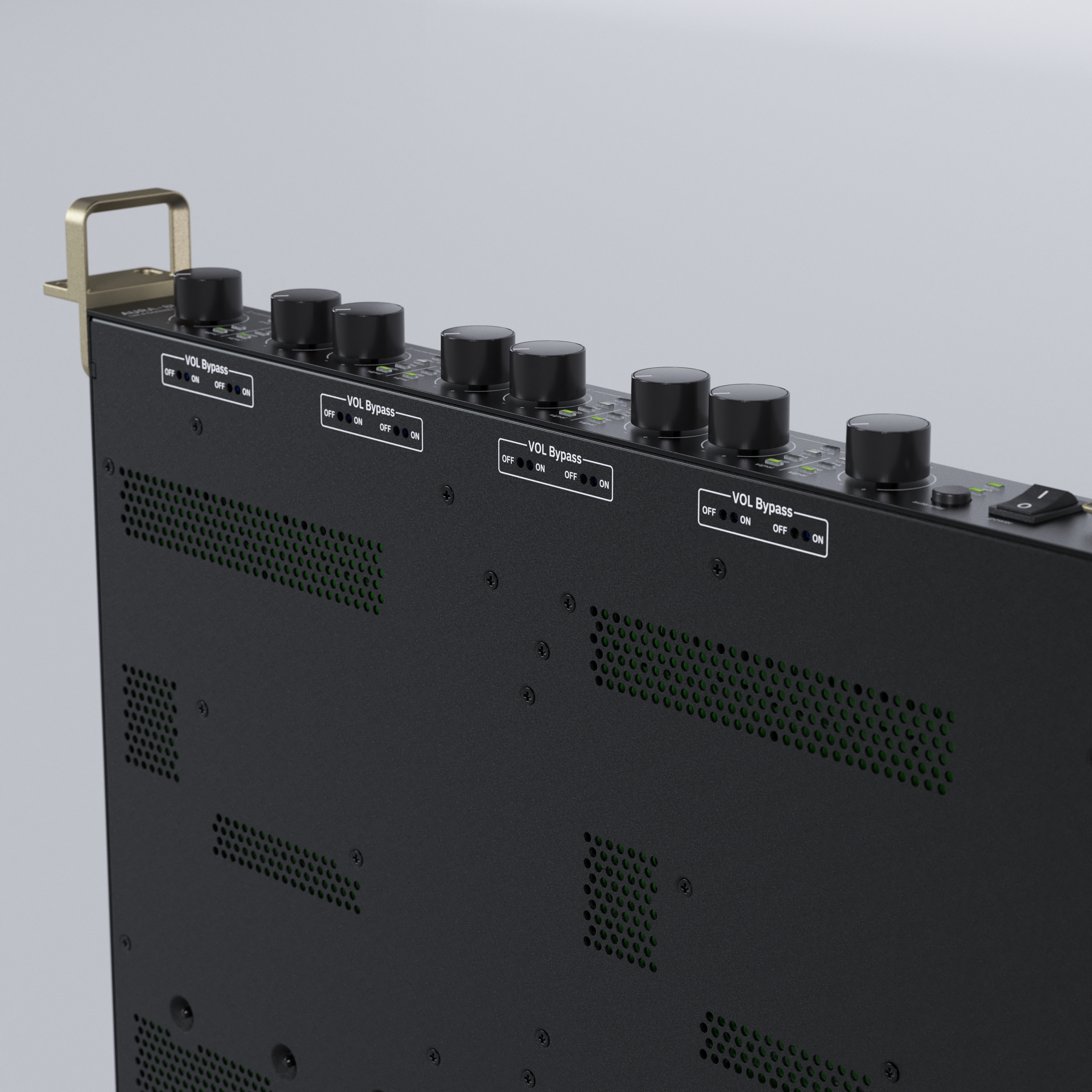 Controlli: Volume frontale per canale con bypass selezionabile