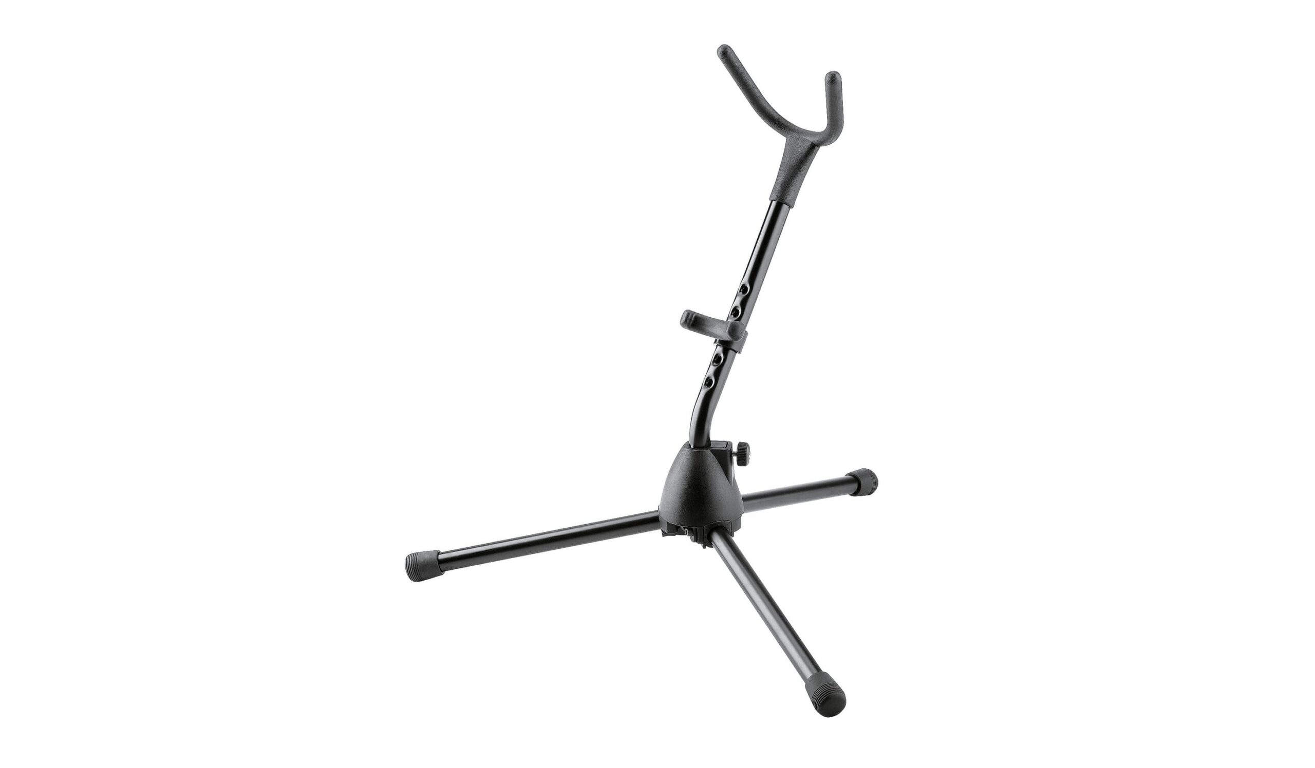 Supporto universale K&M per sassofono tenore e contralto. Struttura robusta, regolabile e richiudibile, con bracci rivestiti per proteggere lo strumento. Ideale per musicisti che cercano stabilità e sicurezza.