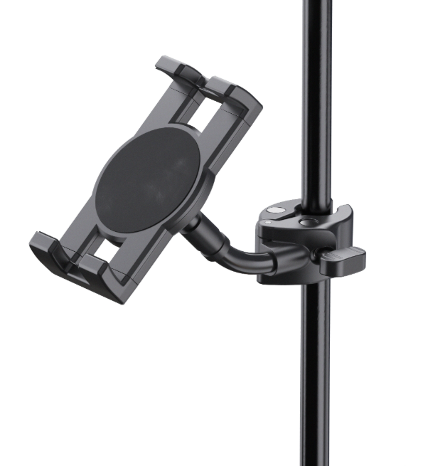 Supporto universale da tavolo/stativo per smartphone e tablet, costruito per durare. Adatto a performance, streaming, presentazioni e controllo app su palco o in studio. Robustezza professionale, regolazioni sicure e adattabilità a diversi dispositivi.