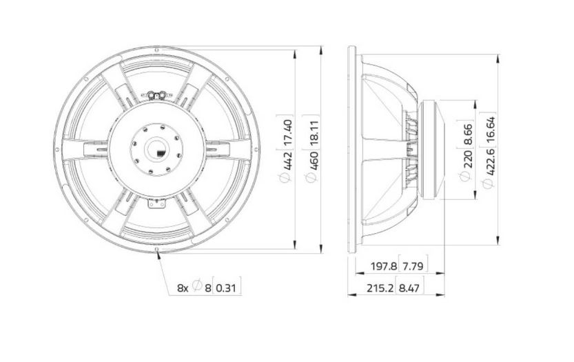 Woofer da 18″ La Voce, 1200W a 8 Ohm: potenza pura per sistemi audio professionali, subwoofer e casse full-range ad alte prestazioni.