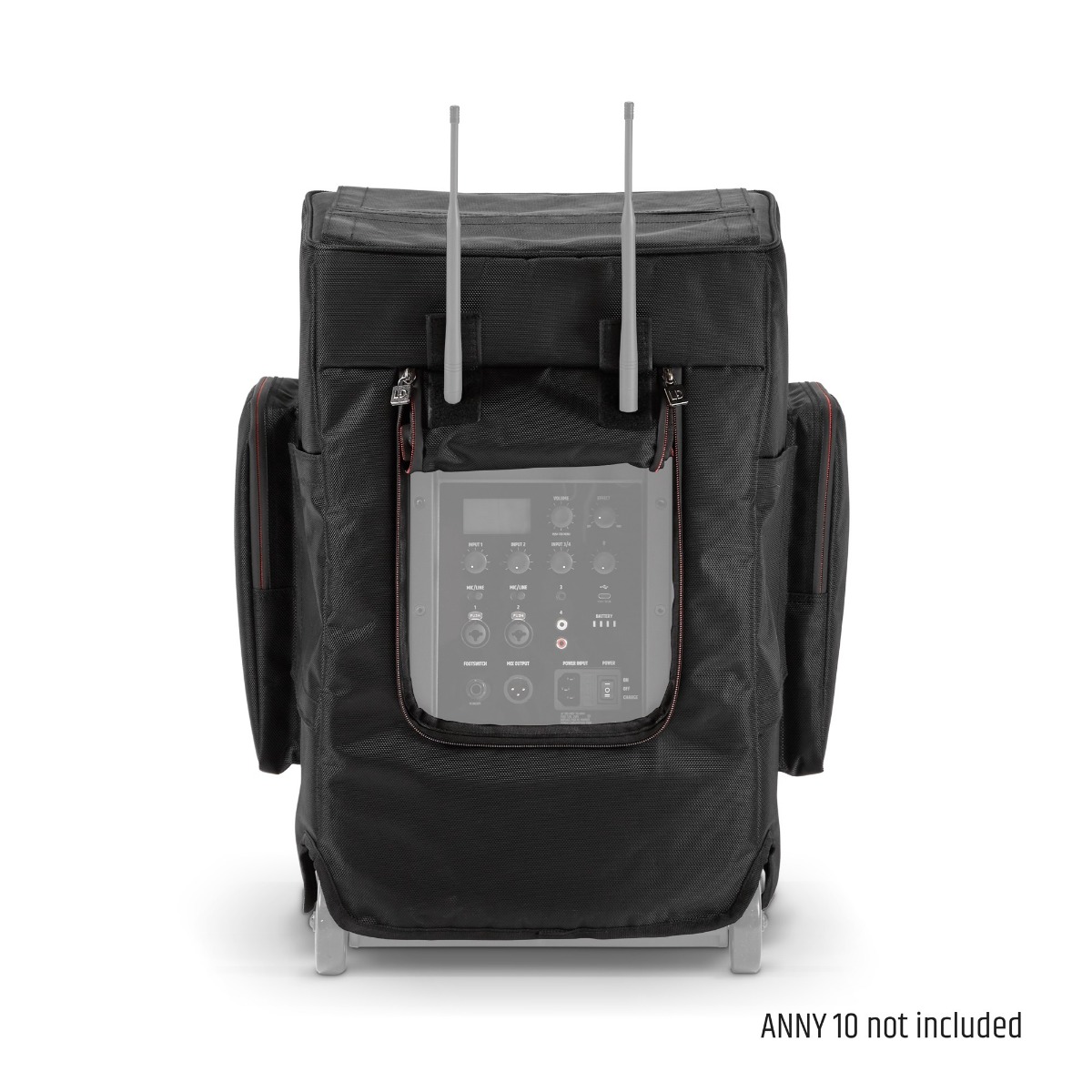 Custodia protettiva per altoparlante LD Systems ANNY® 10, progettata per offrire una protezione efficace contro pioggia, polvere e urti durante il trasporto e l’uso outdoor