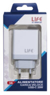 ALIMEN. SWITCH. CARICA VELOCE USB TIPO C 20W 5V 3A max , 100/240Vac Colore BIANCO