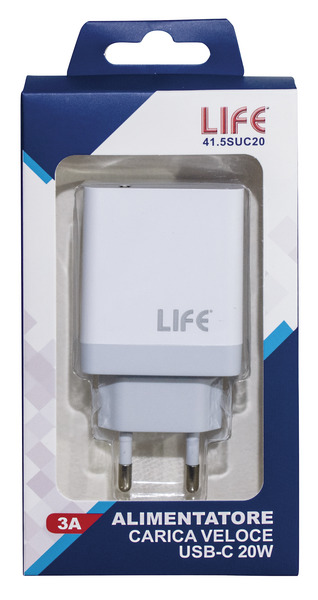 CARICA VELOCE USB TIPO C 20W 5V 3A max , 100/240Vac Colore BIANCO
