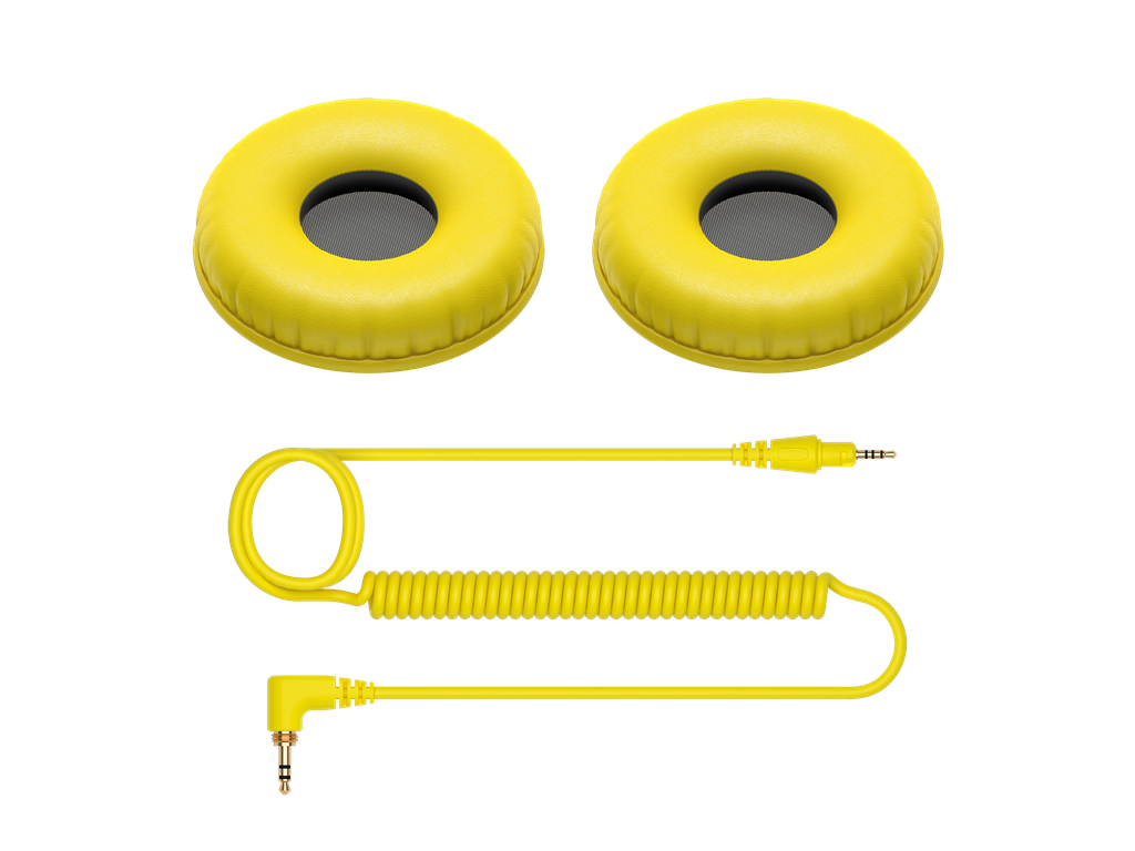 Kit di personalizzazione per cuffie Pioneer DJ HDJ-CUE1, composto da cavo spiralato e cuscinetti auricolari gialli. Aggiunge colore, stile e funzionalità con la qualità costruttiva originale Pioneer DJ.