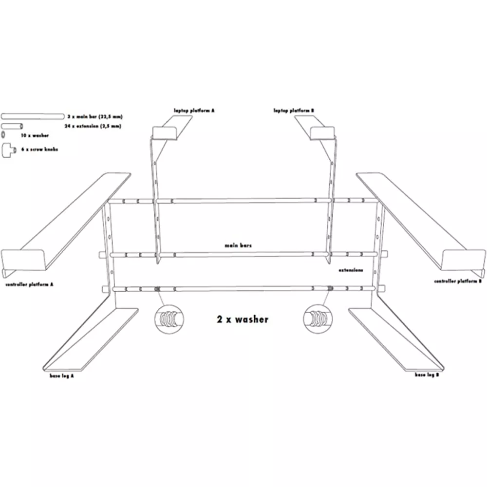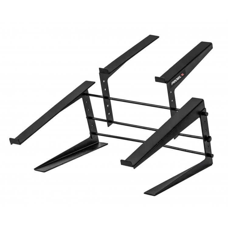 Supporto pieghevole e regolabile per laptop, controller DJ, drum machine e altri dispositivi da performance. Compatto, robusto e versatile.