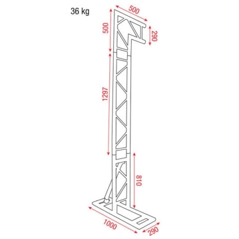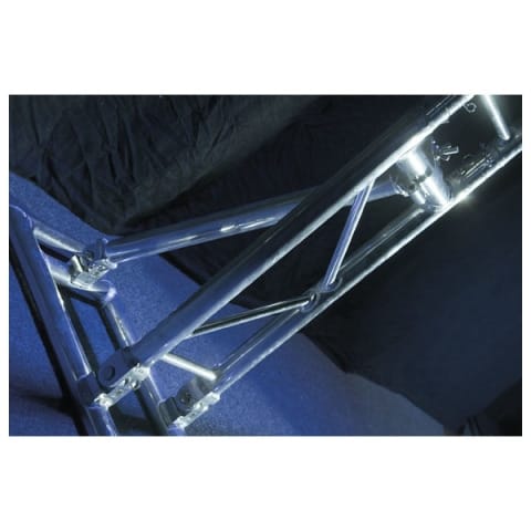 Con una larghezza di 3,68 m e un’altezza massima di 2,6 m, offre spazio sufficiente per barre LED, scanner, macchine del fumo e teste mobili leggere. Si monta e smonta rapidamente grazie alla struttura pieghevole, ideale per eventi temporanei, allestimenti rapidi e tour mobili.