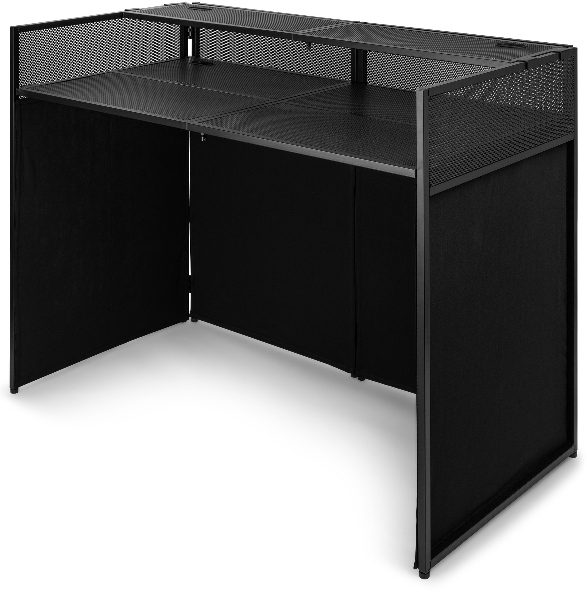 Il Vonyx DB6 Pro è un DJ booth professionale con struttura in alluminio e schermo da 1,3 m, progettato per garantire stabilità, praticità e un look elegante per qualsiasi evento. Facile da montare e smontare, offre una soluzione ideale per DJ itineranti e service audio/luci.